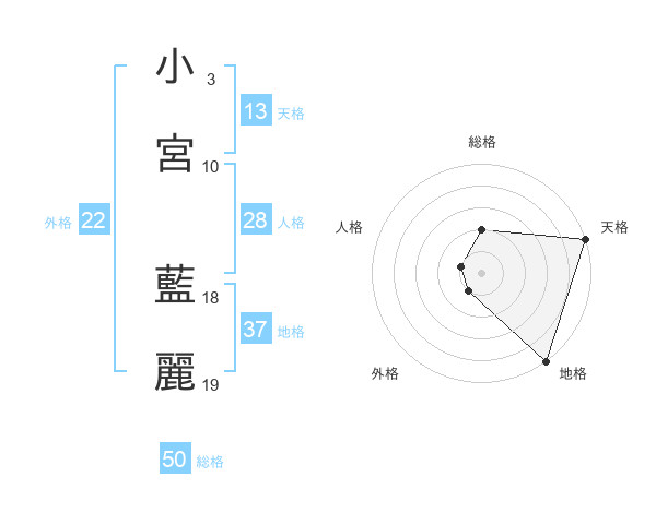小宮 藍麗さんの天格は13画の5点!