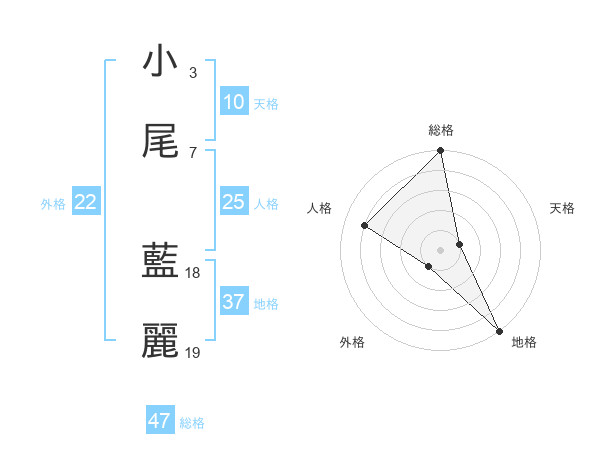 小尾 藍麗さんの総格は47画の5点!