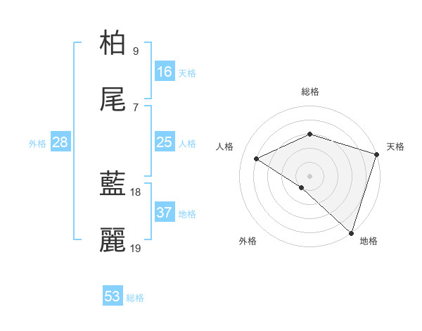 柏尾 藍麗さんの総格は53画の3点!