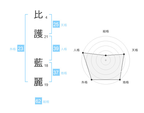 比護 藍麗さんの外格は23画の5点!