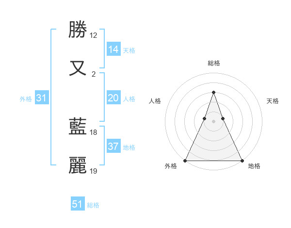 勝又 藍麗さんの総格は51画の3点!