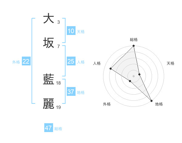 大坂 藍麗さんを姓名の画数から五運を鑑定