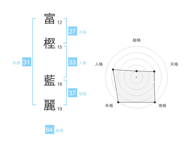 富樫 藍麗さんの外格は31画の5点!