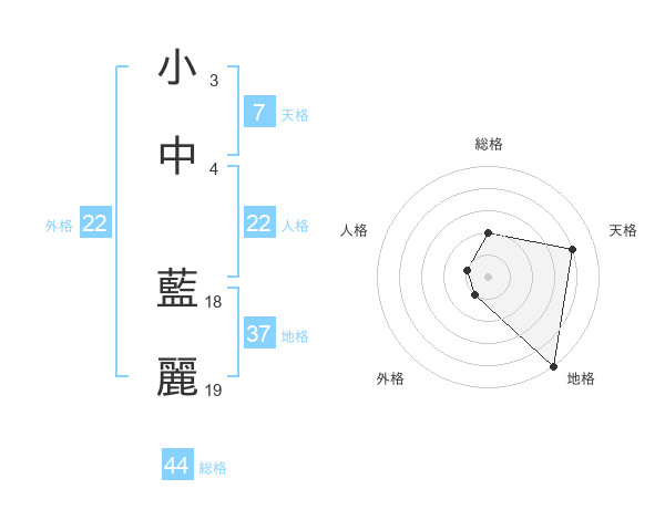 小中 藍麗さんを姓名の画数から五運を鑑定
