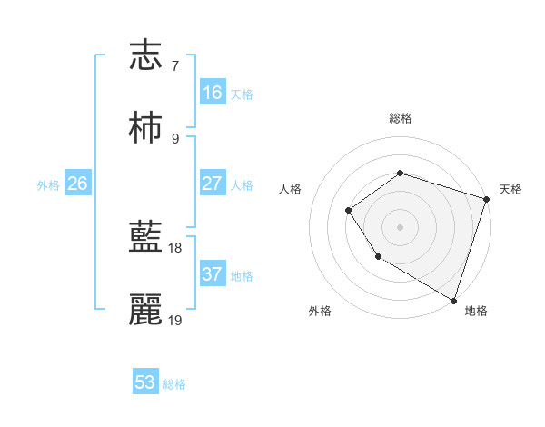 志柿 藍麗さんを姓名の画数から五運を鑑定