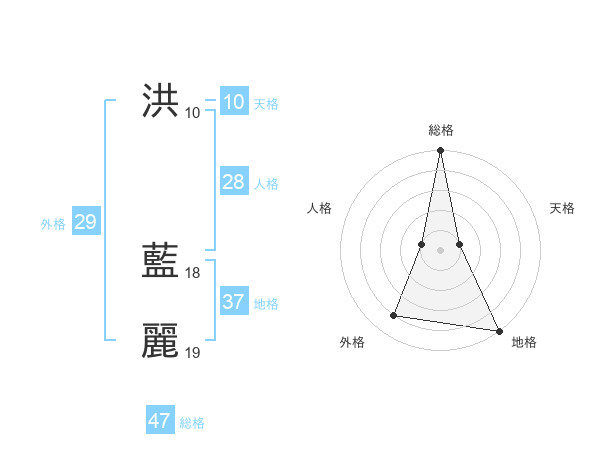 洪 藍麗さんの総格は47画の5点!