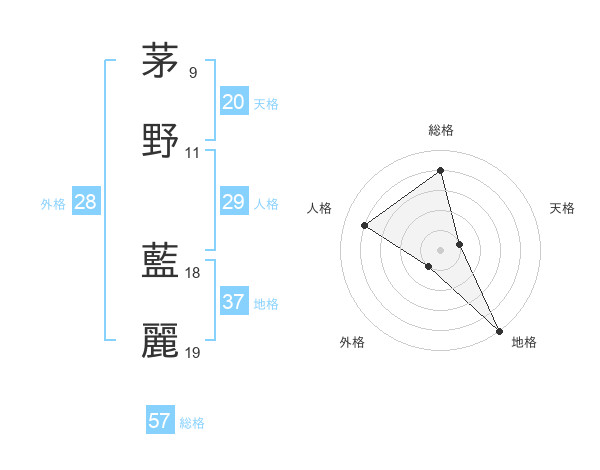 茅野 藍麗さんを姓名の画数から五運を鑑定