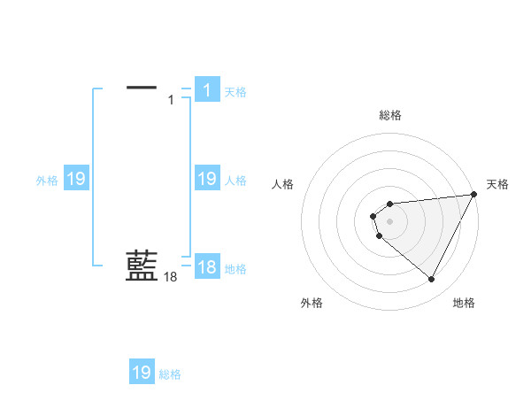 一 藍さんの外格は19画の1点!