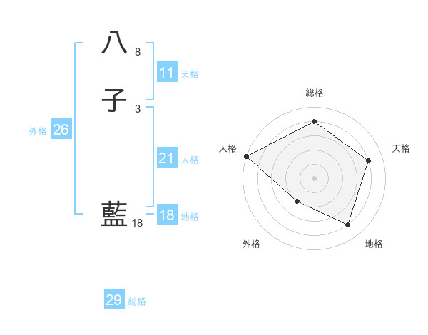八子 藍さんの総格は29画の4点!