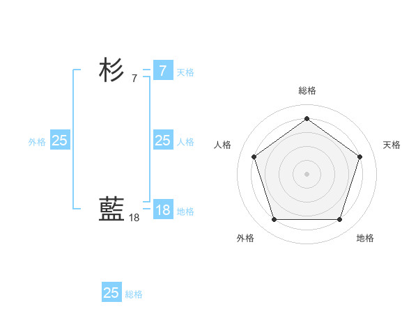 杉 藍さんの総格は25画の4点!