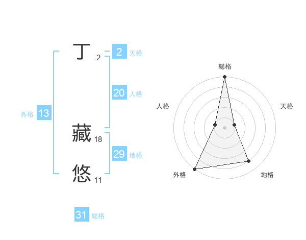 丁 藏悠さんの総格は31画の5点!