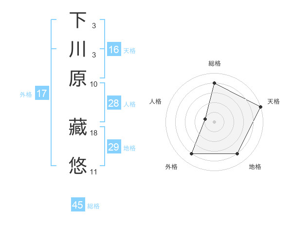 下川原 藏悠さんの総格は45画の4点!