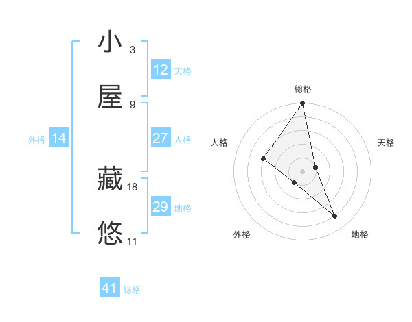 小屋 藏悠さんの総格は41画の5点!