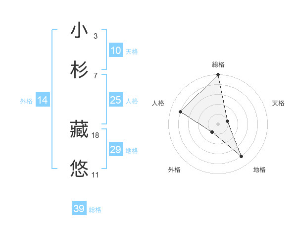 小杉 藏悠さんの総格は39画の5点!