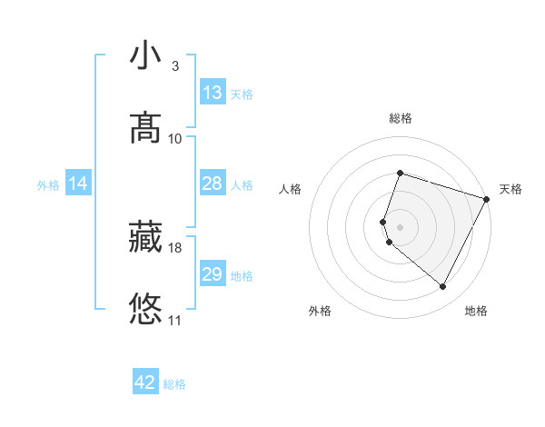 小髙 藏悠さんを姓名の画数から五運を鑑定