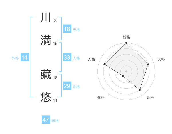 川満 藏悠さんの総格は47画の5点!