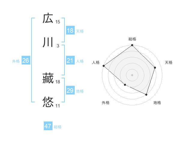 広川 藏悠さんの総格は47画の5点!