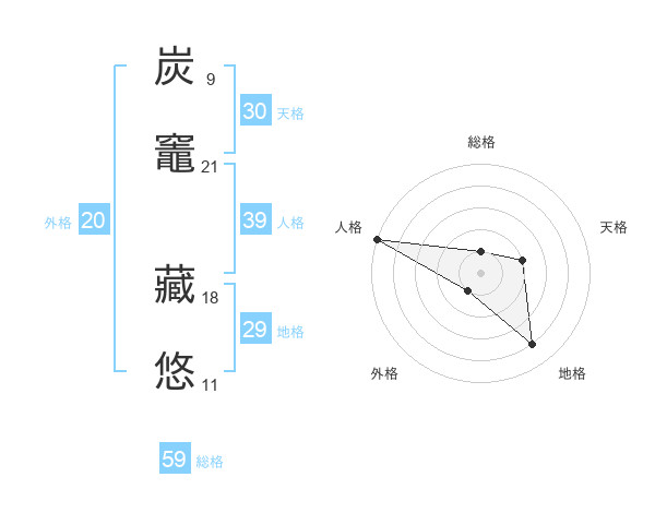炭竈 藏悠さんの総格は59画の1点!