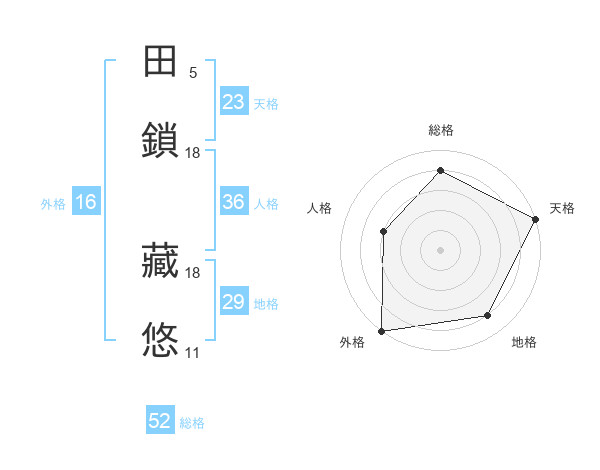 田鎖 藏悠さんの総格は52画の4点!