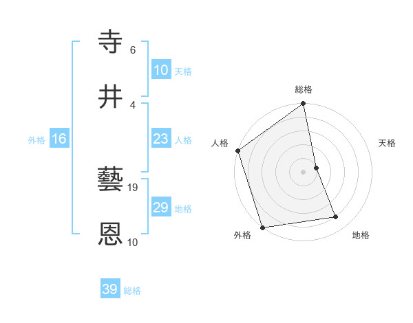 寺井 藝恩さんの総格は39画の5点!