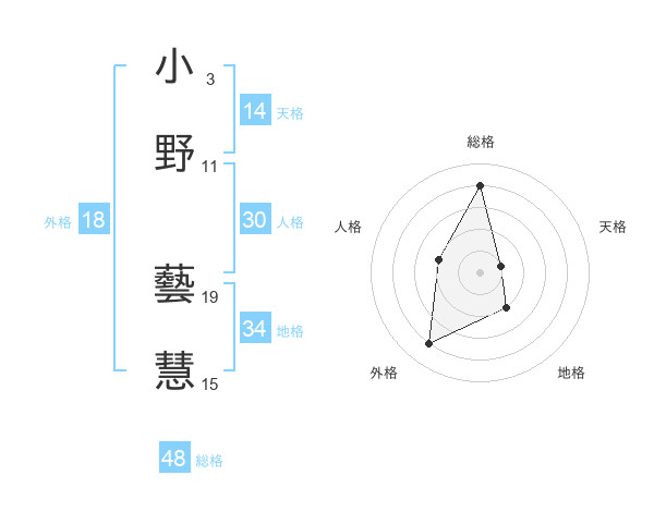 小野 藝慧さんを姓名の画数から五運を鑑定