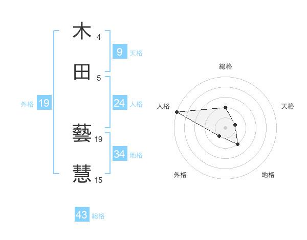 木田 藝慧さんを姓名の画数から五運を鑑定