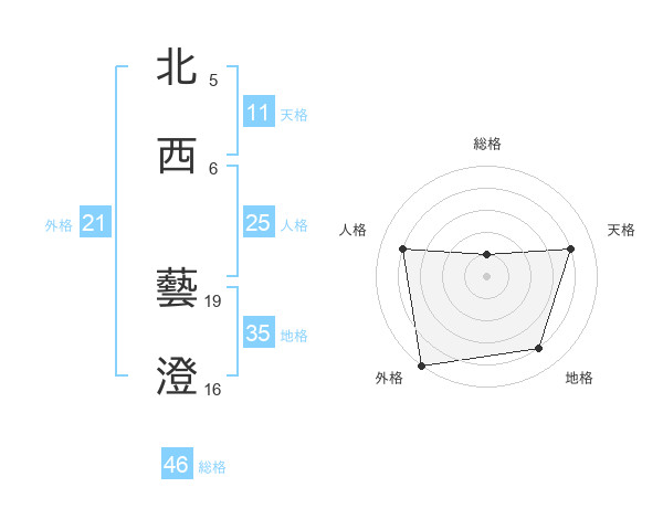 北西 藝澄さんを姓名の画数から五運を鑑定