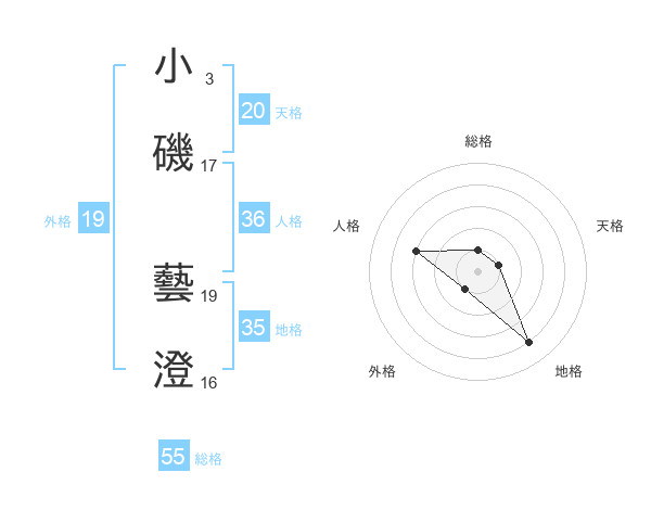 小磯 藝澄さんを姓名の画数から五運を鑑定