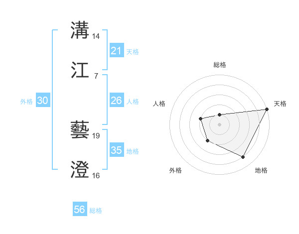 溝江 藝澄さんの天格は21画の5点!
