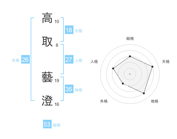 高取 藝澄さんを姓名の画数から五運を鑑定