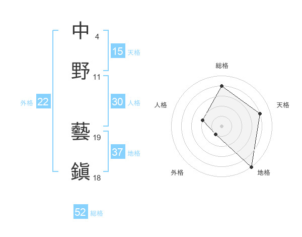 中野 藝鎭さんの総格は52画の4点!