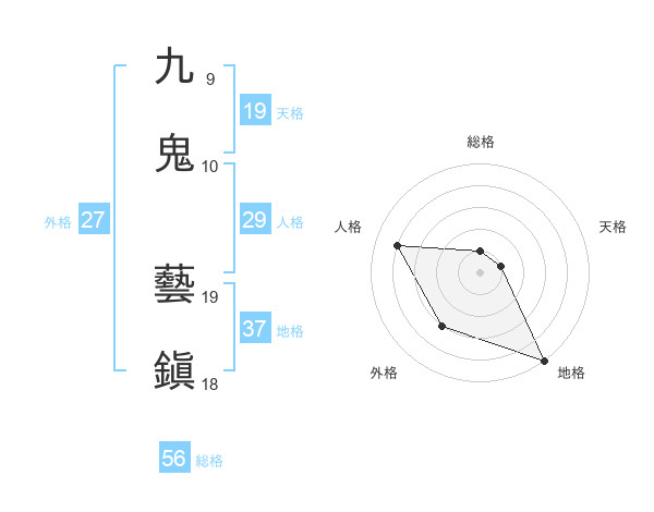 九鬼 藝鎭さんの総格は56画の1点!