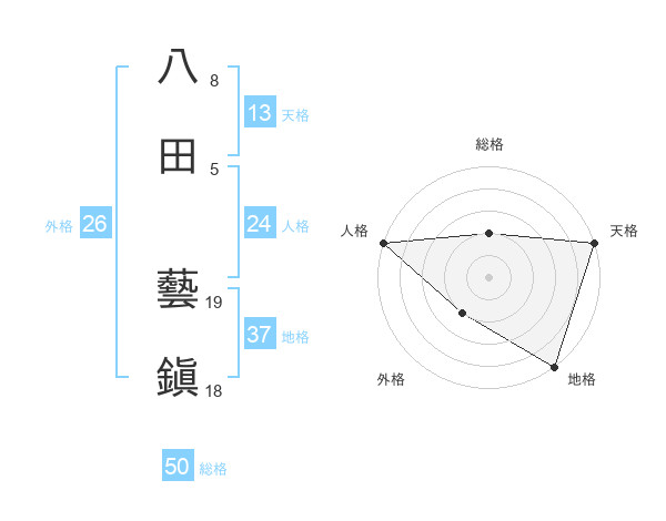 八田 藝鎭さんを姓名の画数から五運を鑑定