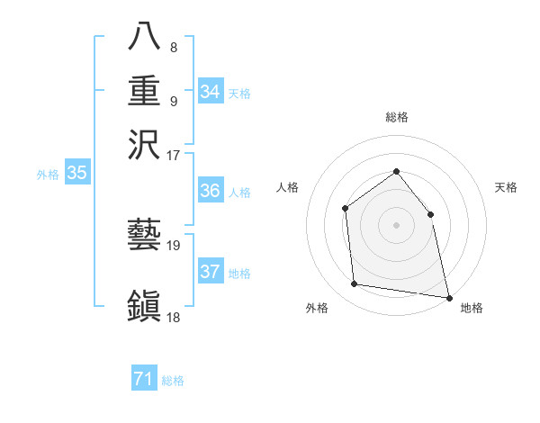 八重沢 藝鎭さんの総格は71画の3点!