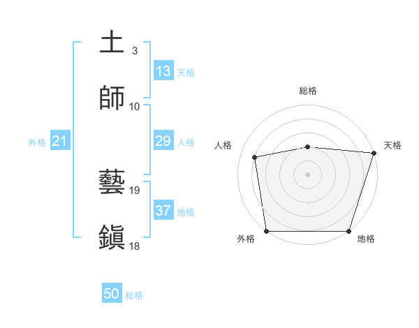 土師 藝鎭さんを姓名の画数から五運を鑑定