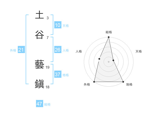 土谷 藝鎭さんの総格は47画の5点!