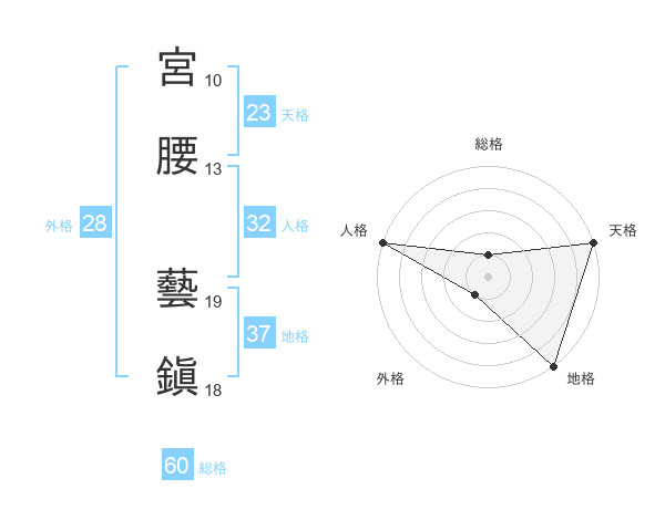 宮腰 藝鎭さんを姓名の画数から五運を鑑定