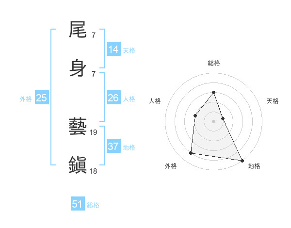 尾身 藝鎭さんの総格は51画の3点!
