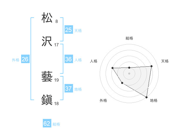 松沢 藝鎭さんの総格は62画の1点!