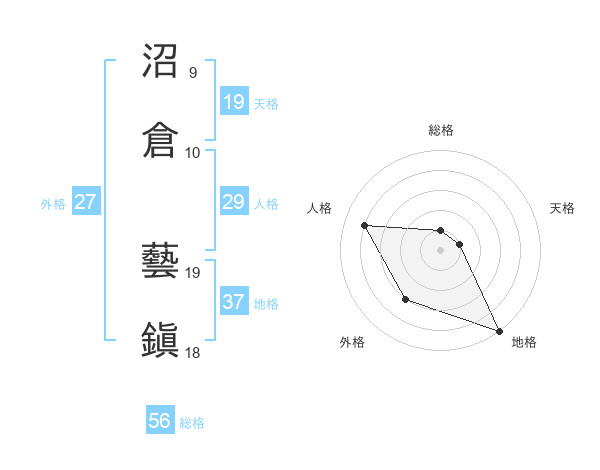 沼倉 藝鎭さんの総格は56画の1点!