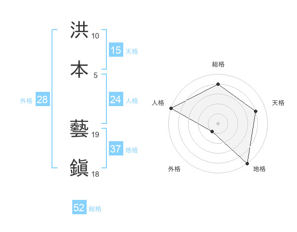 洪本 藝鎭さんを姓名の画数から五運を鑑定