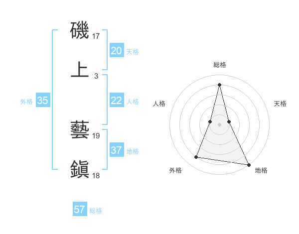 磯上 藝鎭さんの外格は35画の4点!