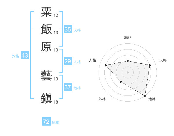 粟飯原 藝鎭さんを姓名の画数から五運を鑑定