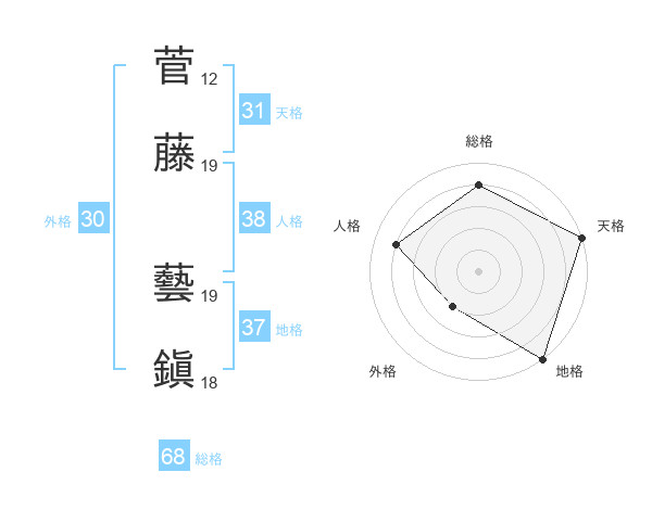 菅藤 藝鎭さんを姓名の画数から五運を鑑定