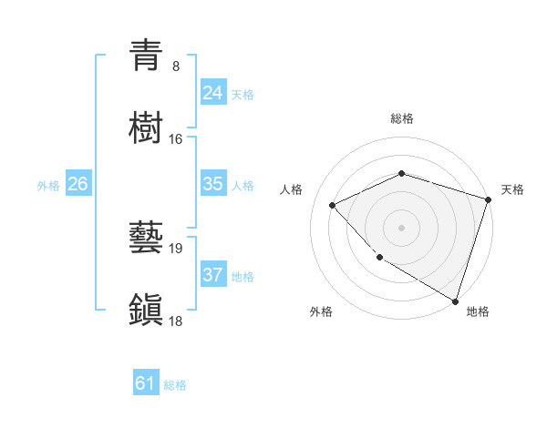 青樹 藝鎭さんの総格は61画の3点!