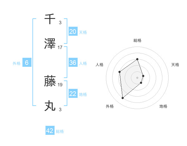 千澤 藤丸さんの総格は42画の3点!