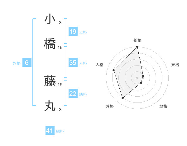 小橋 藤丸さんを姓名の画数から五運を鑑定