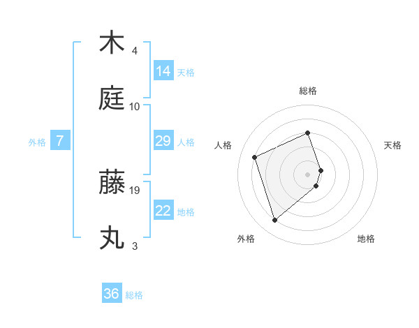 木庭 藤丸さんの総格は36画の3点!