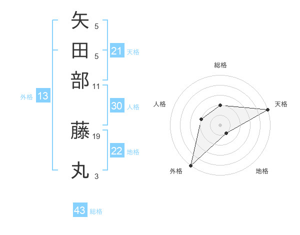矢田部 藤丸さんを姓名の画数から五運を鑑定