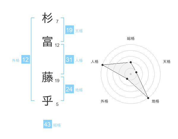 杉富 藤乎さんを姓名の画数から五運を鑑定